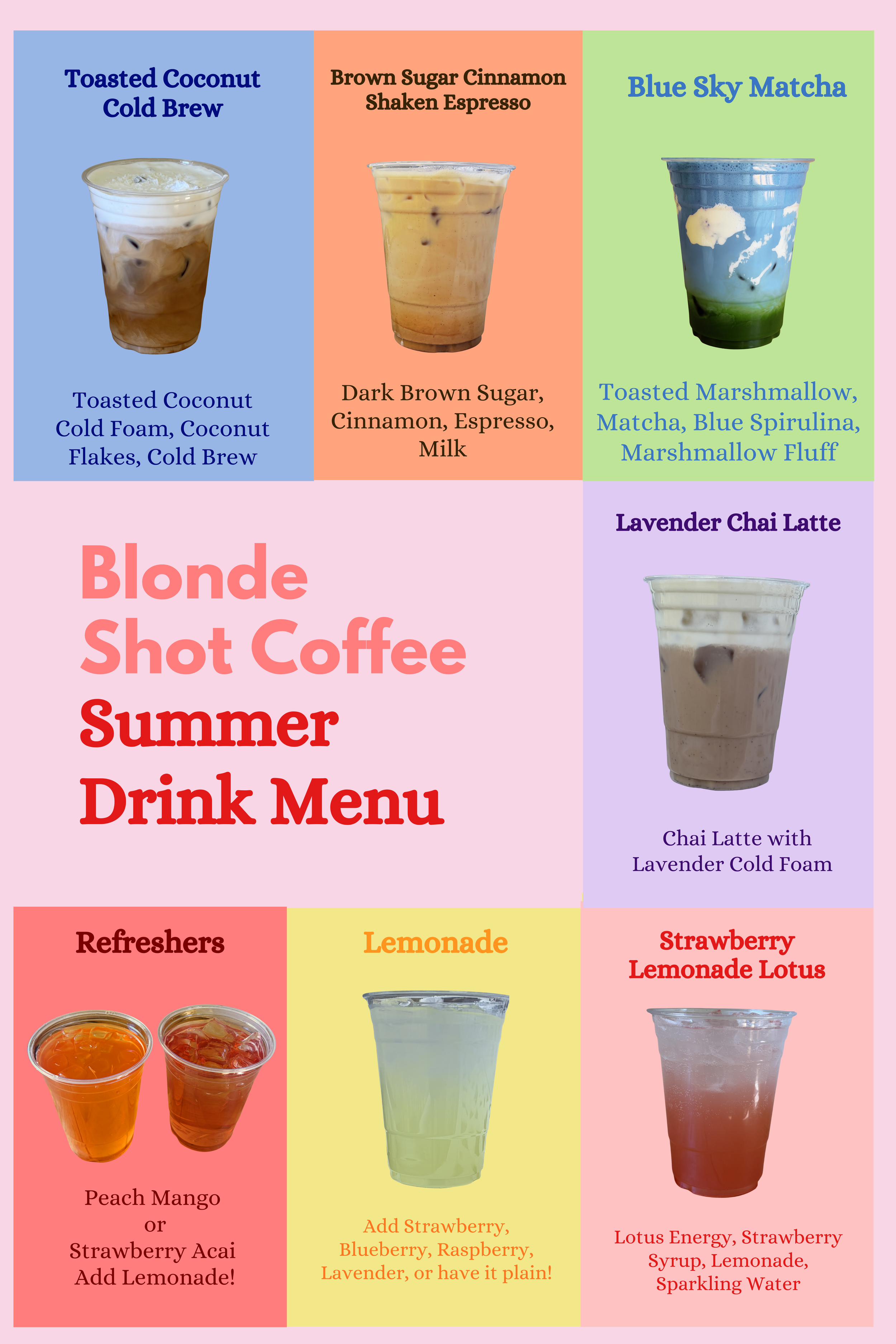 We offer a wide variety of drinks in our little trailer! We have 5 signature drinks on our menu, but we love to encourage customization for our guests!